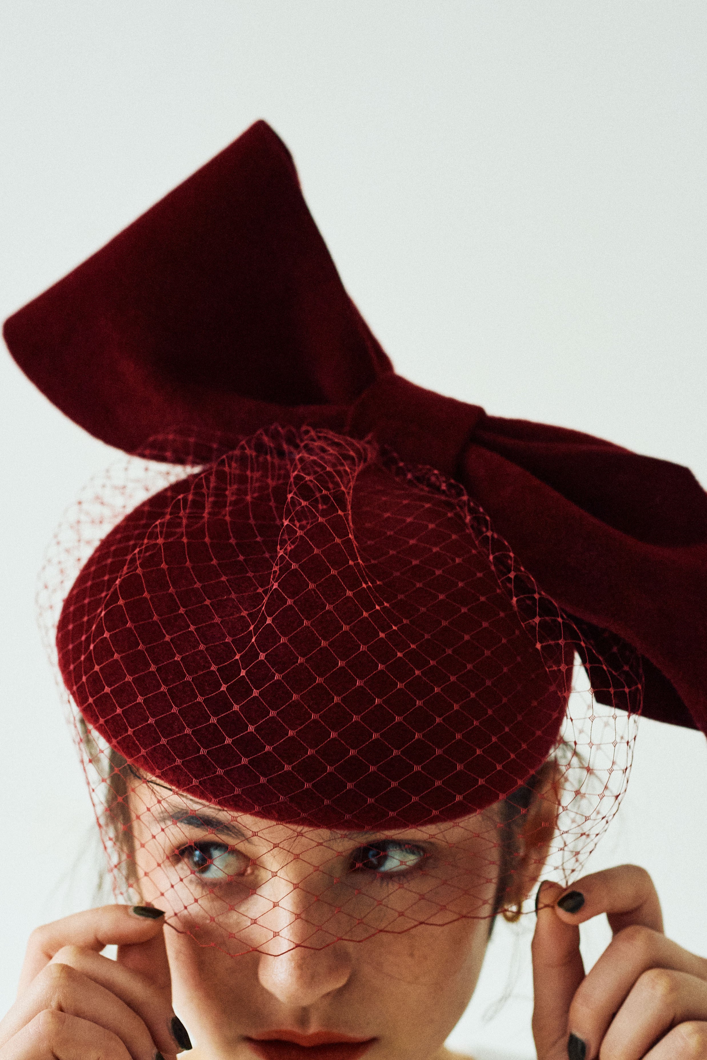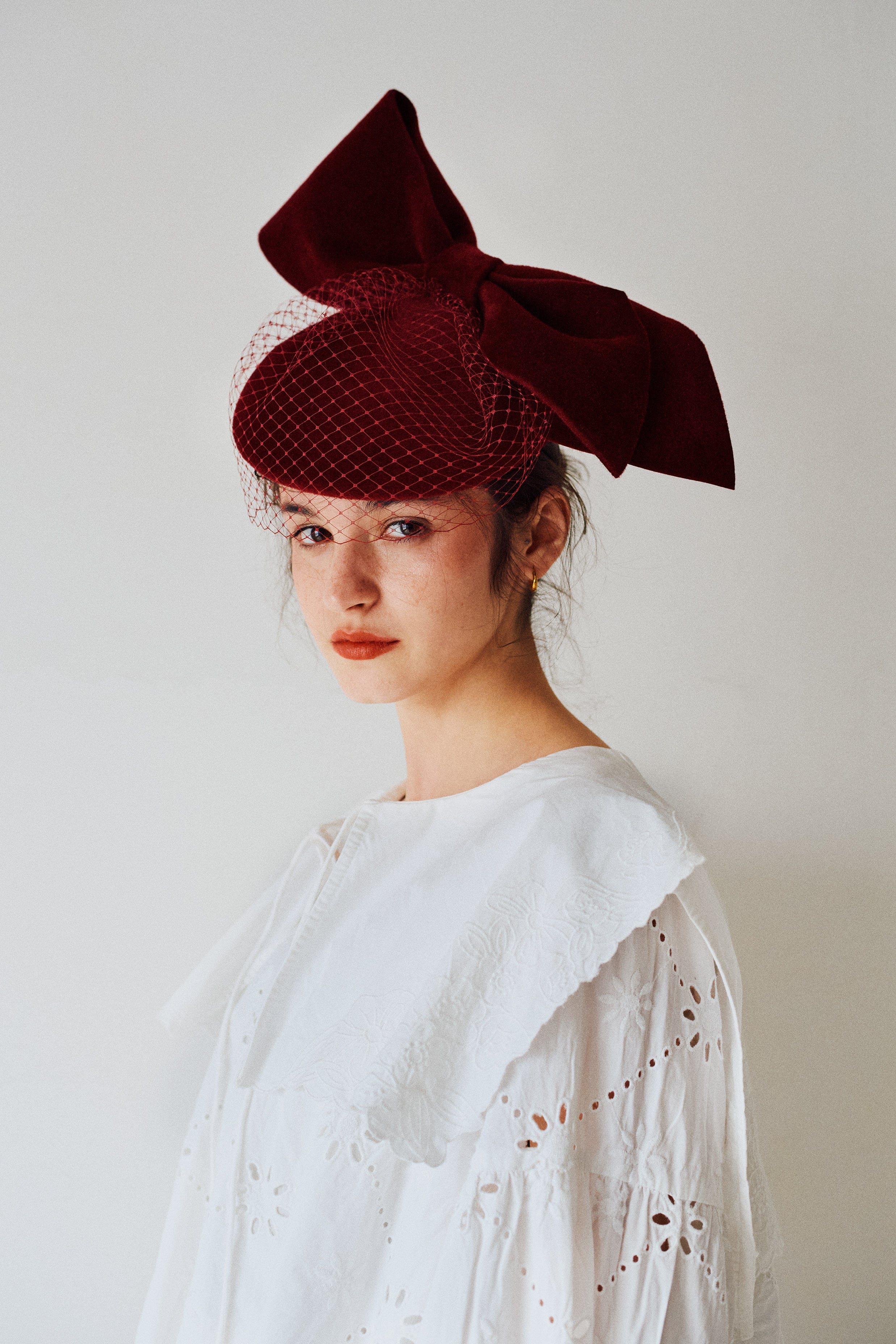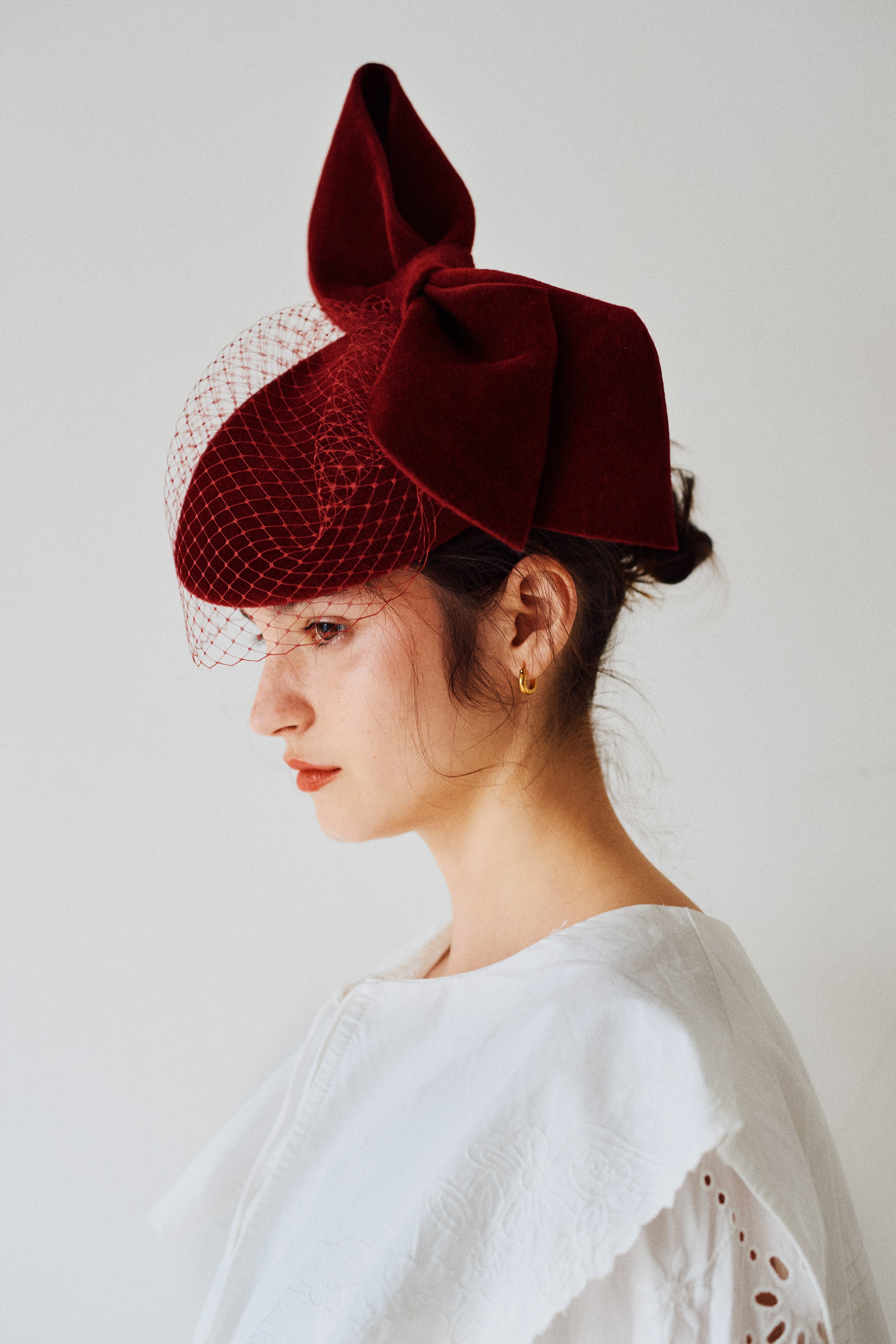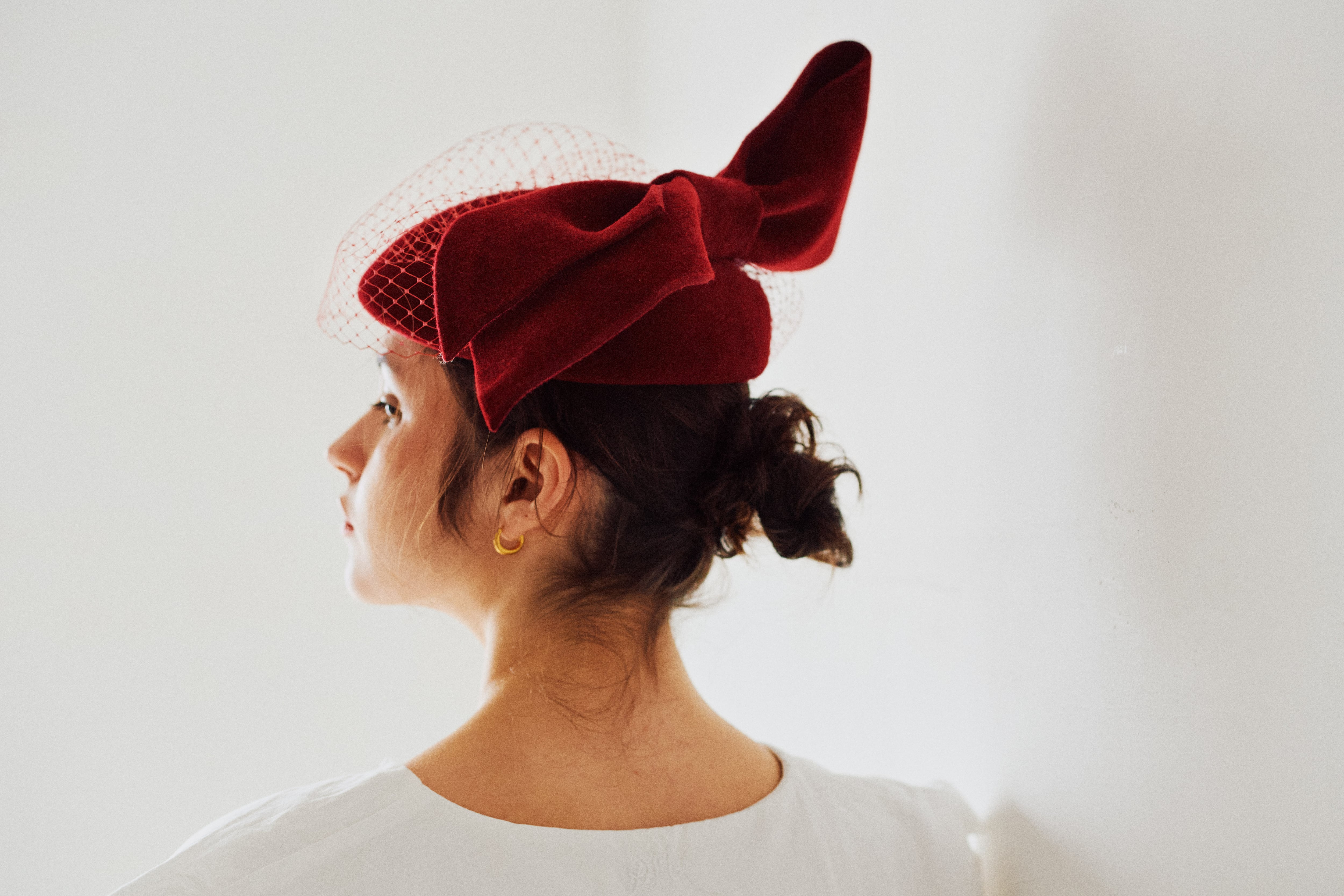 チェコ産の高品質のラビットフェルトを使って仕立てたカクテルハット。