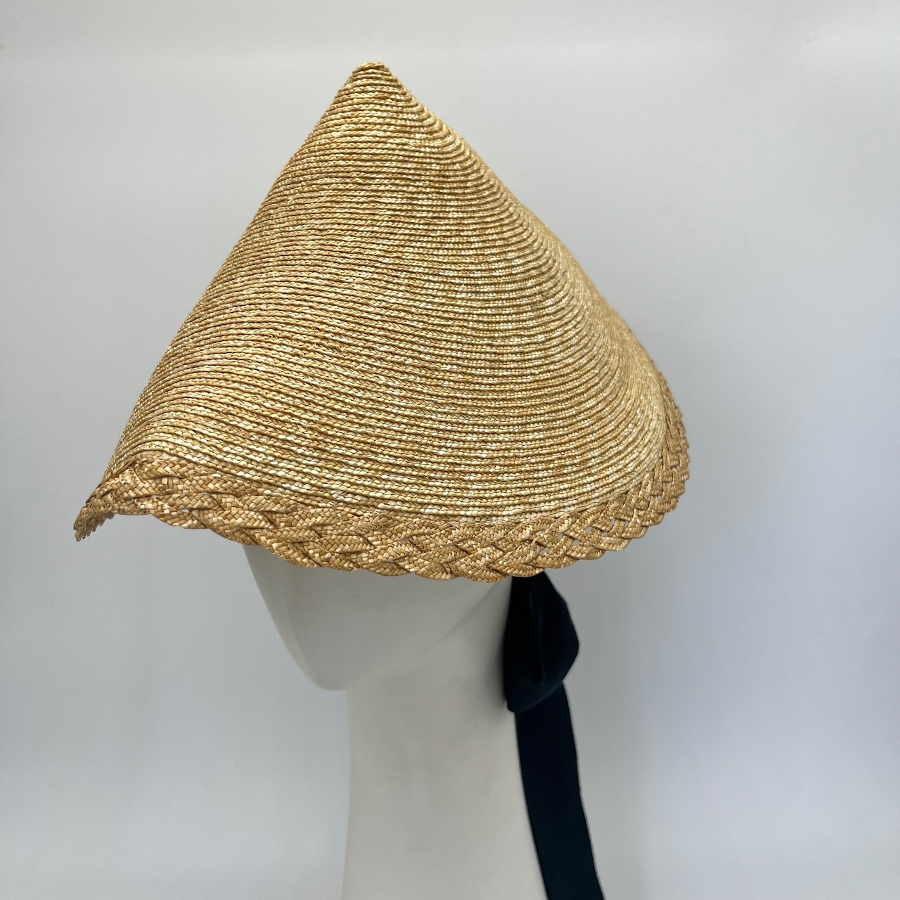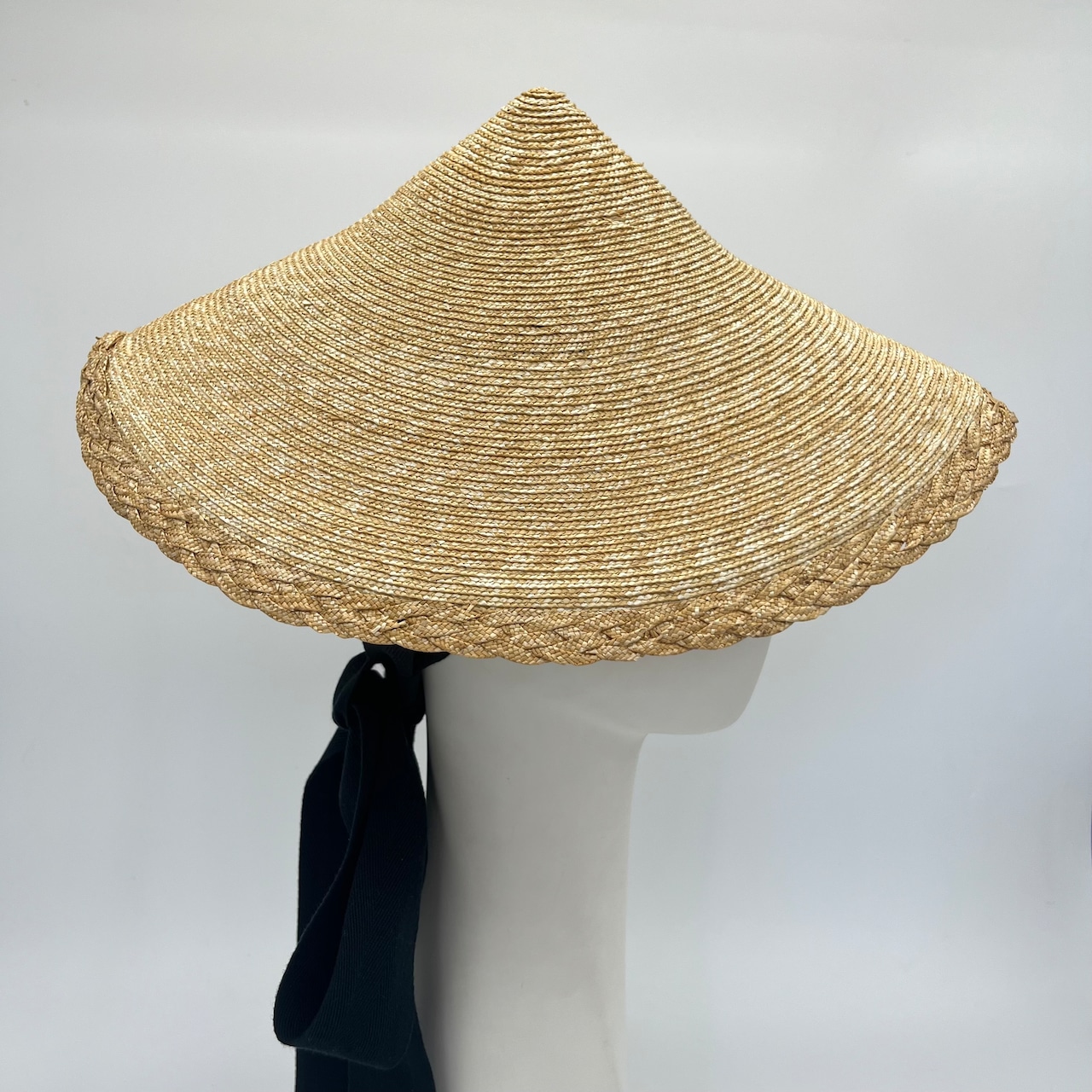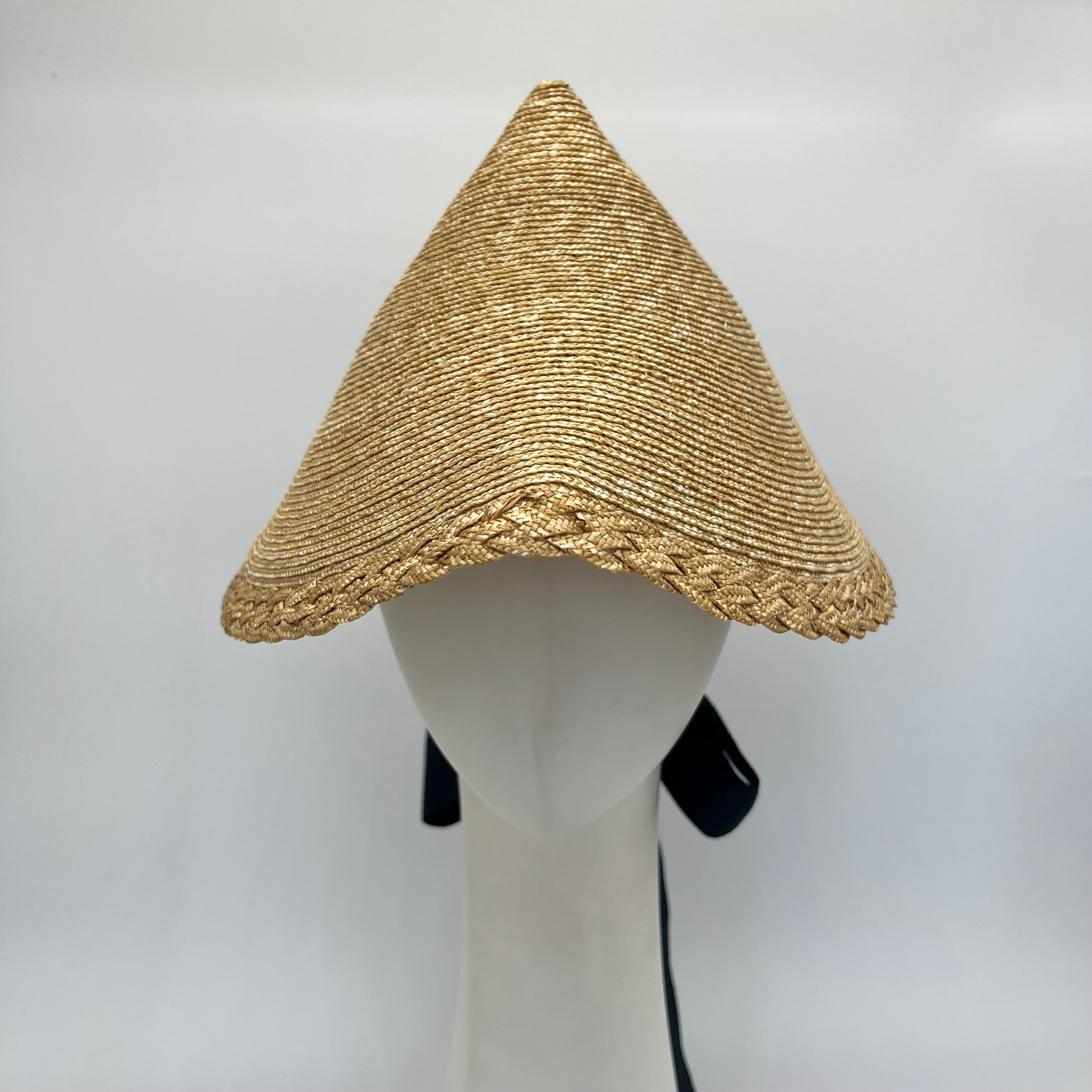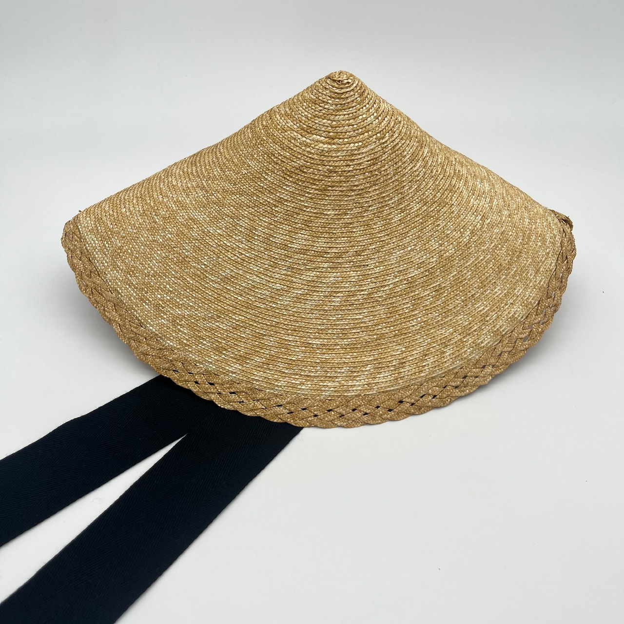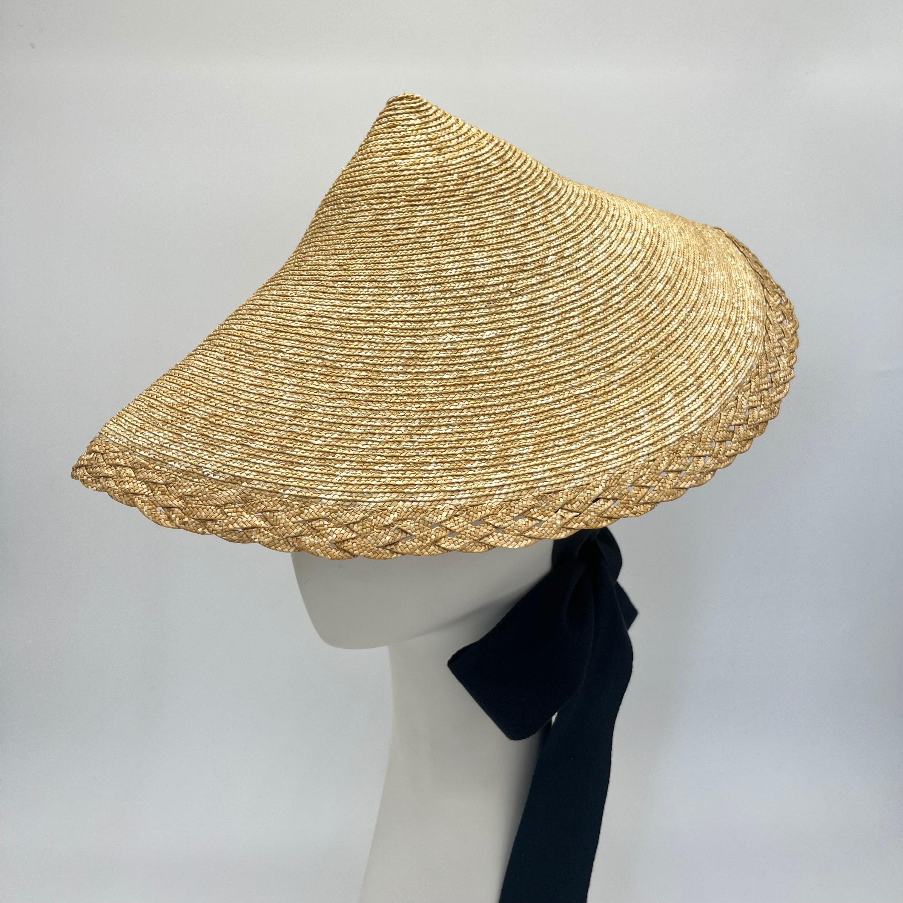 Crafted from fine straw braid, this renewed version comes in a slightly smaller size, allowing it to be worn more like an elegant headpiece.
