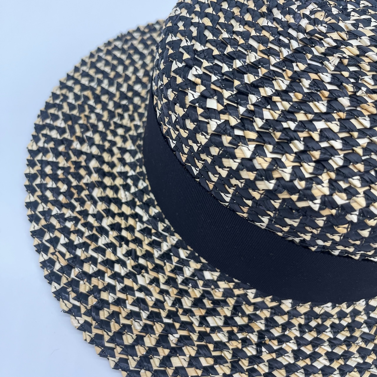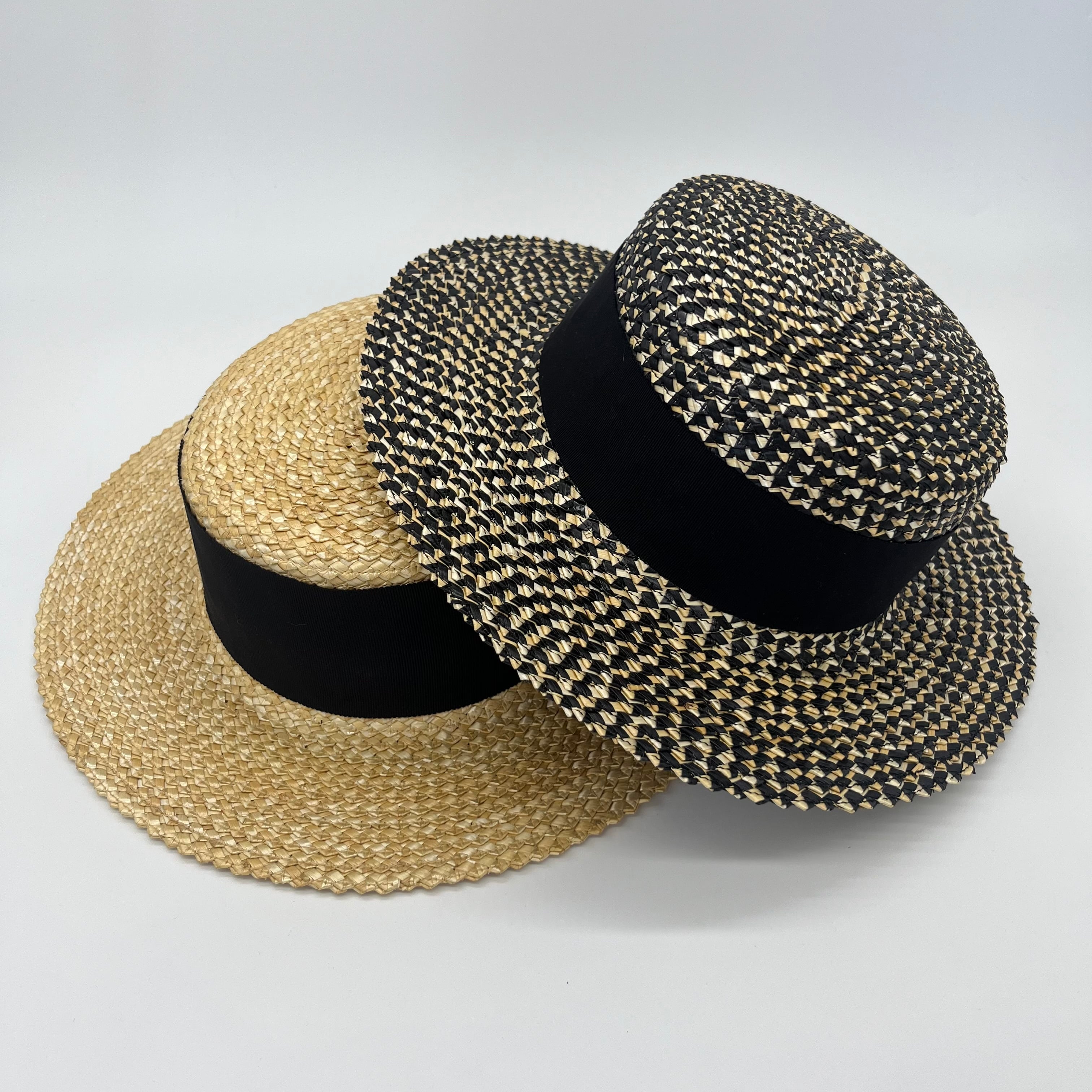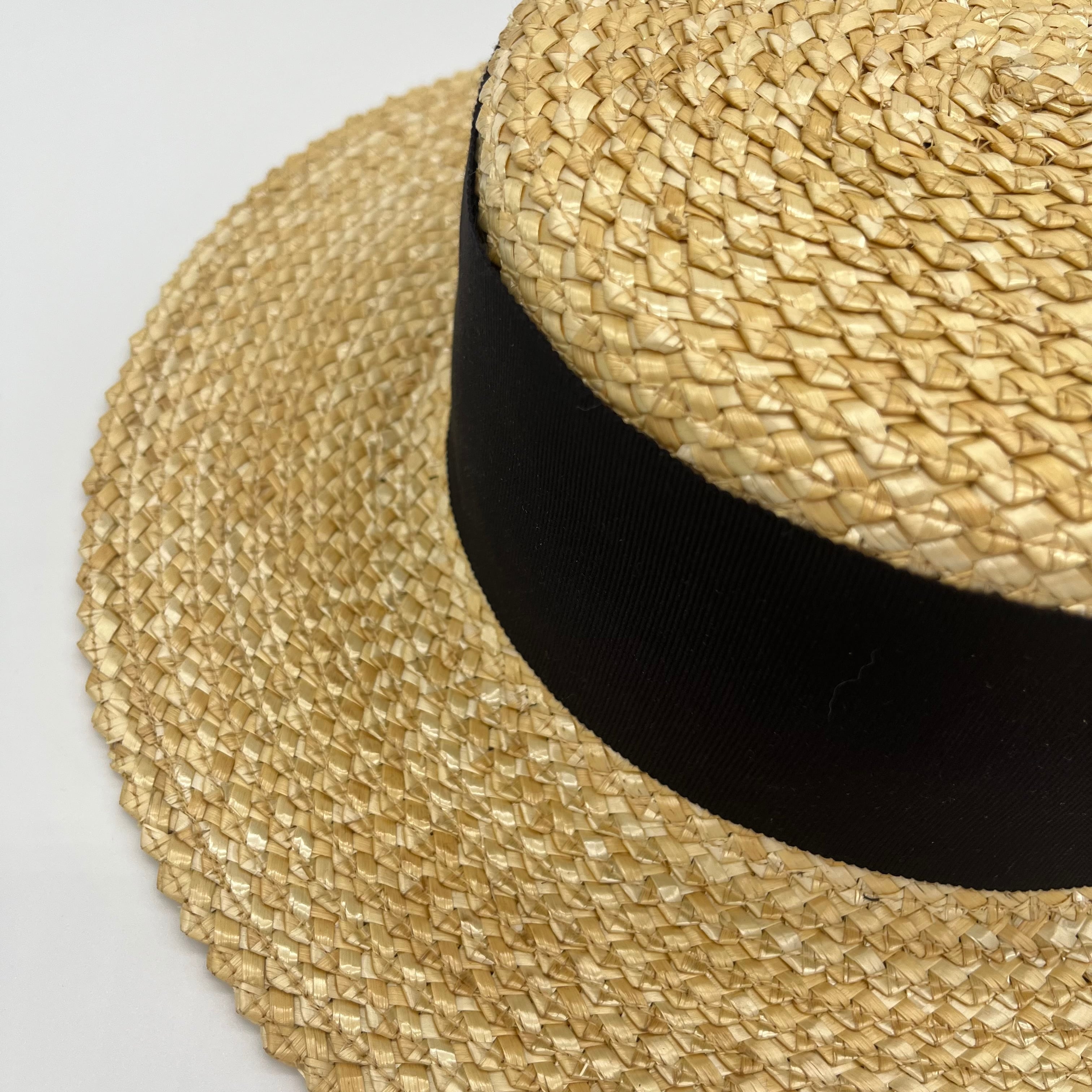 花麦と言われる変わり編みの麦のブレードで仕立てたキャノチェハット。