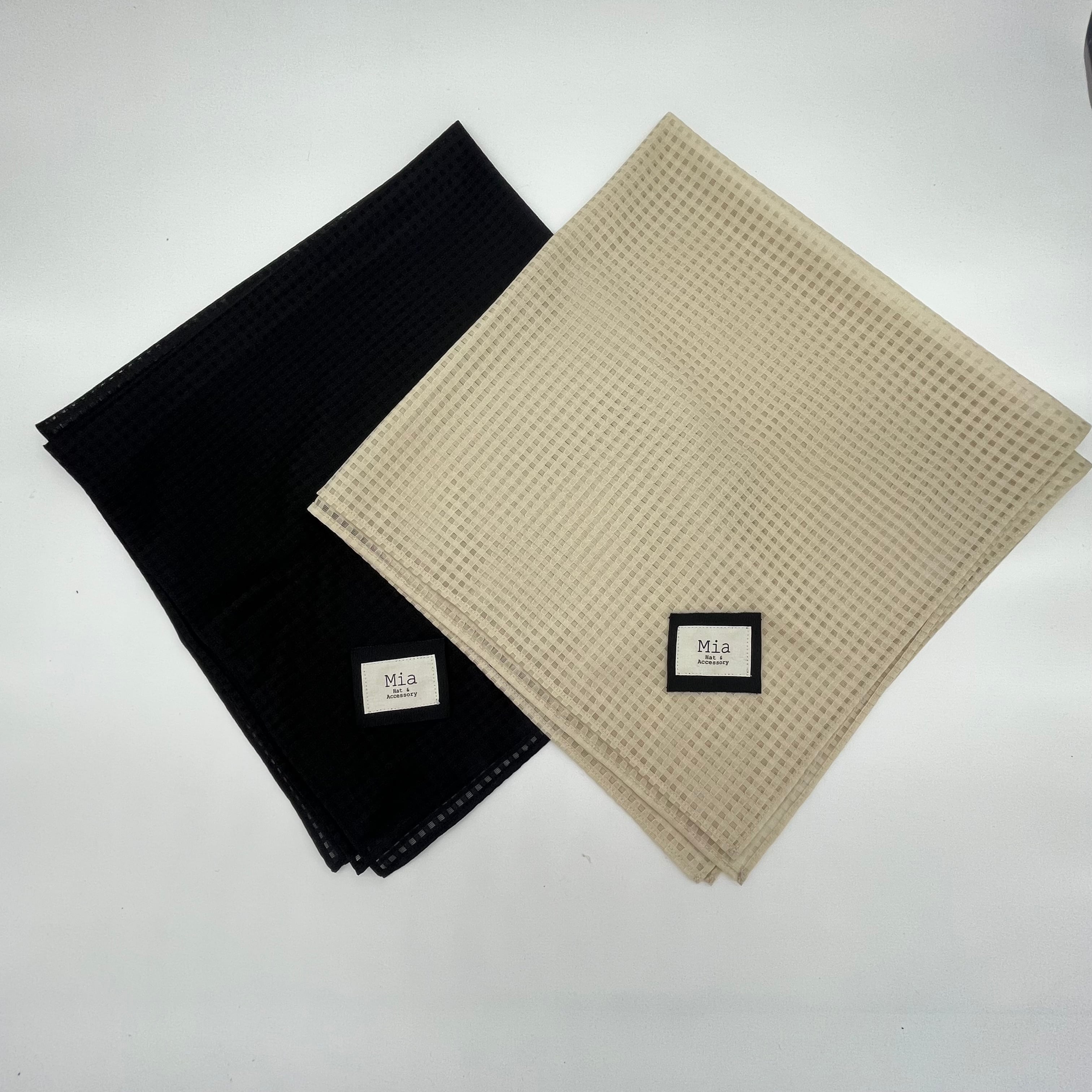 帽子の下に巻いたり、肩に掛けたりと日焼け対策にもおすすめ。