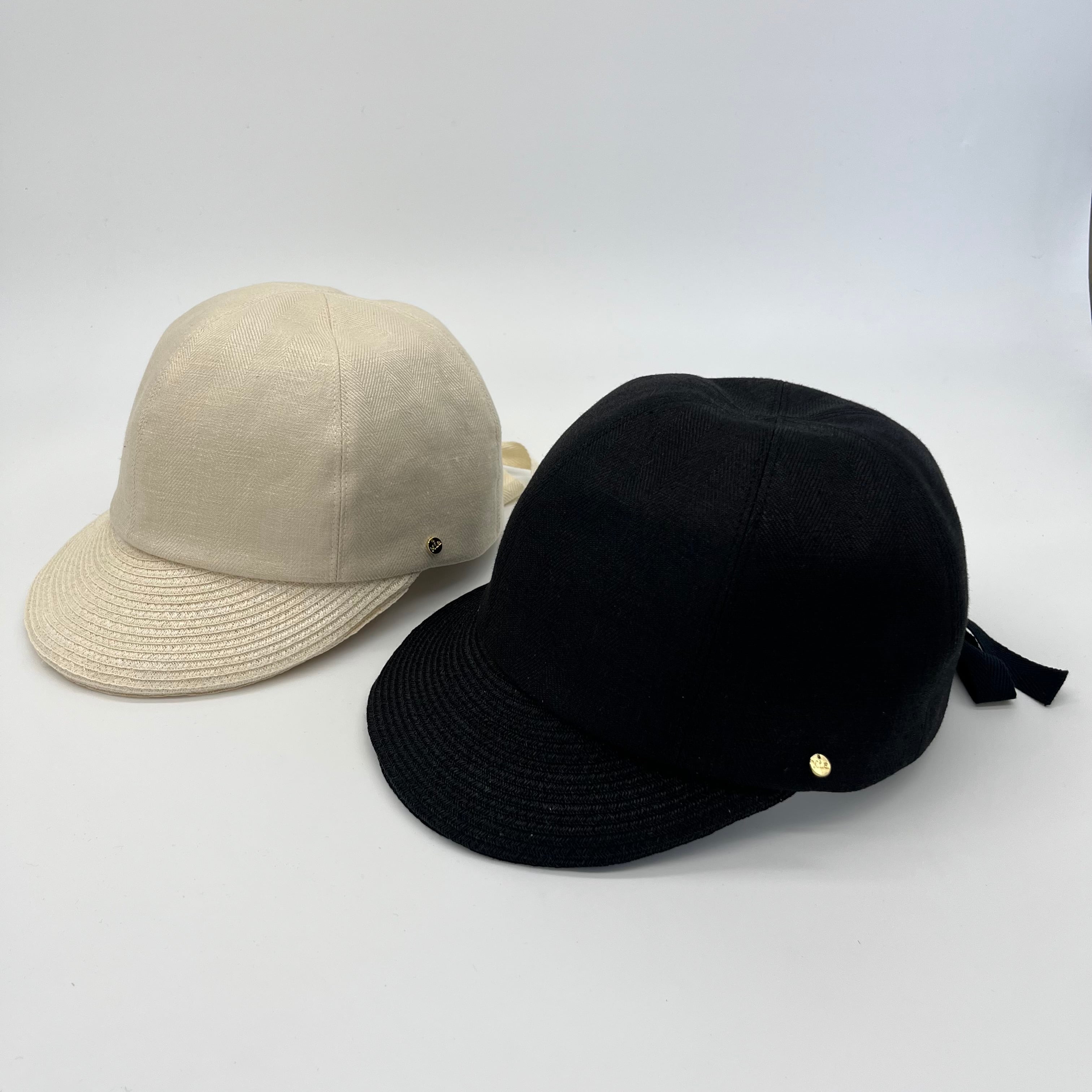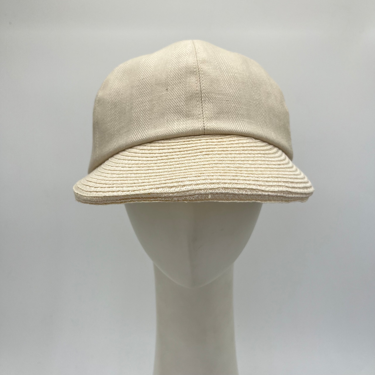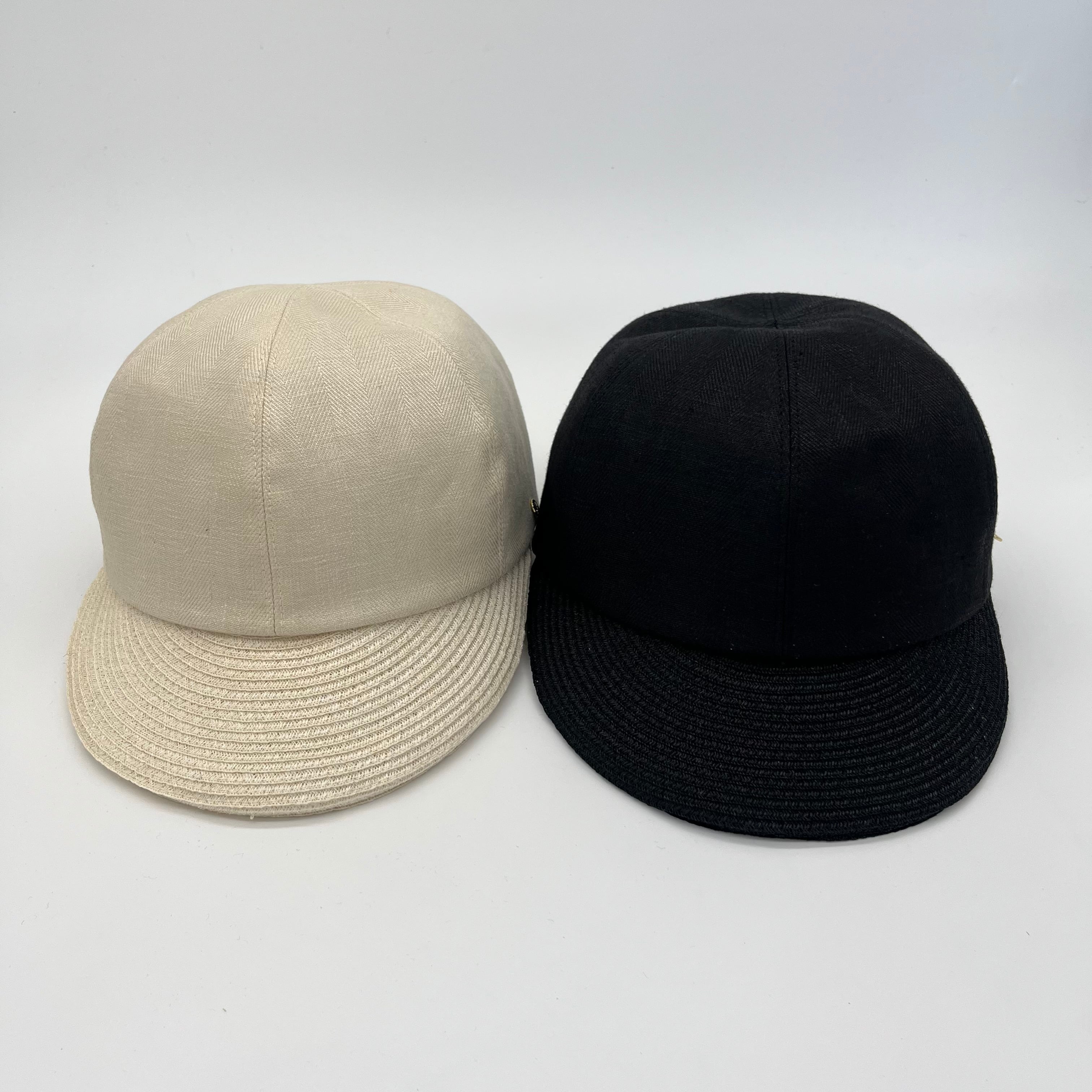 リネンと麻ブレードのブリムを合わせました。スポーティーすぎず、女性らしく被れるキャップを目指しました。