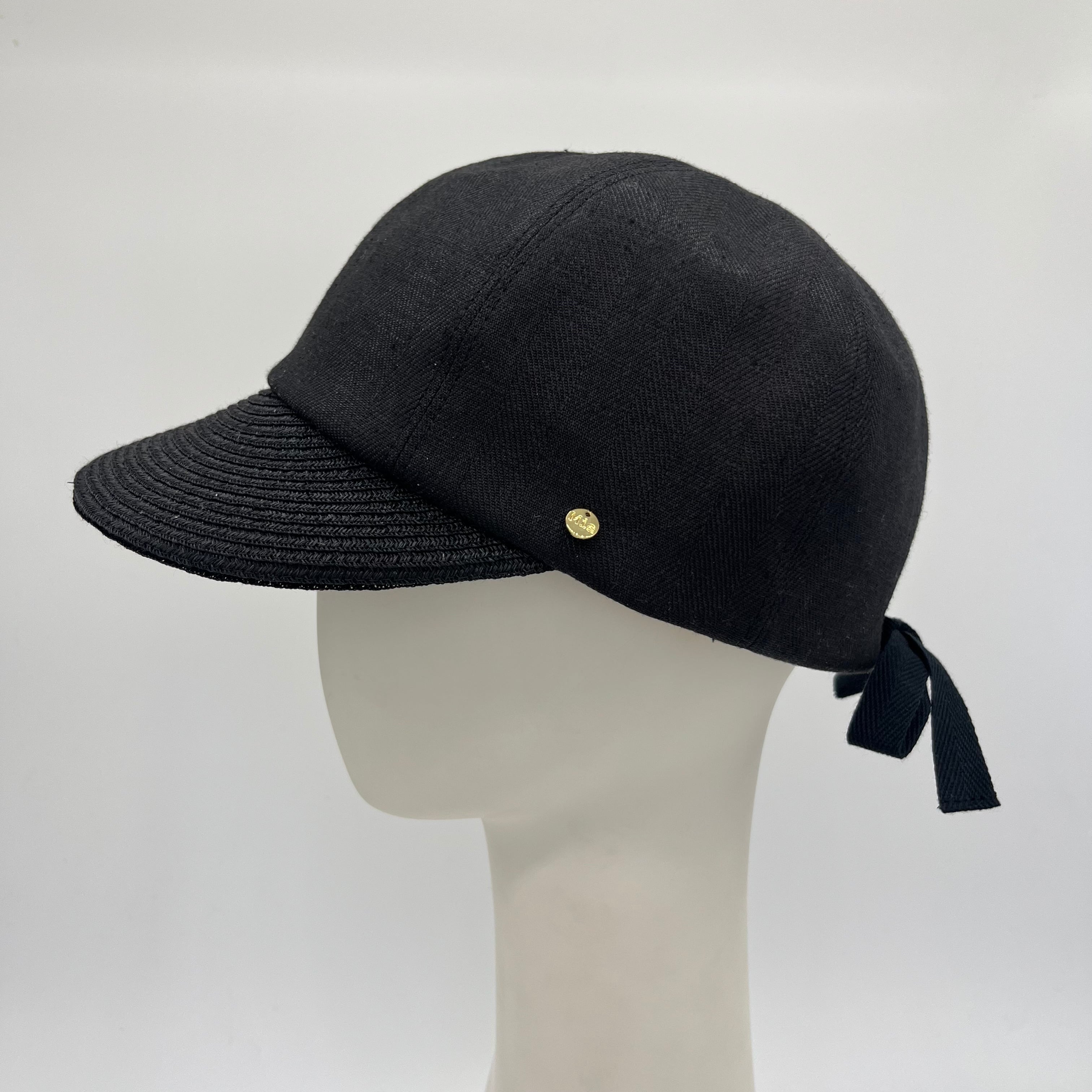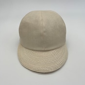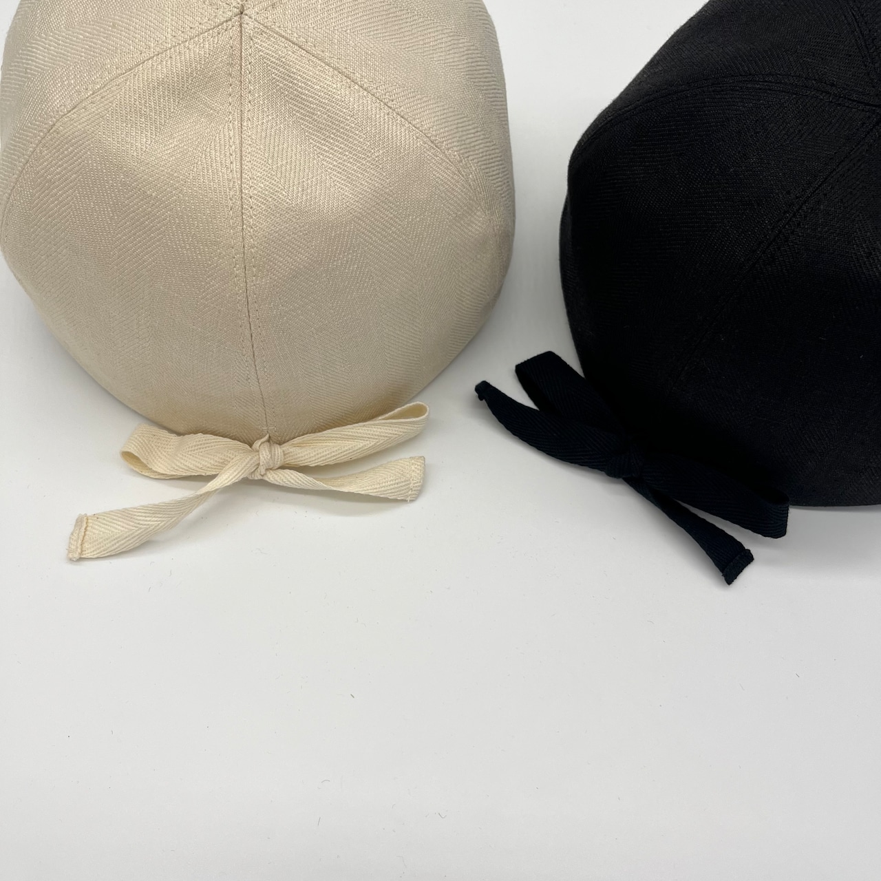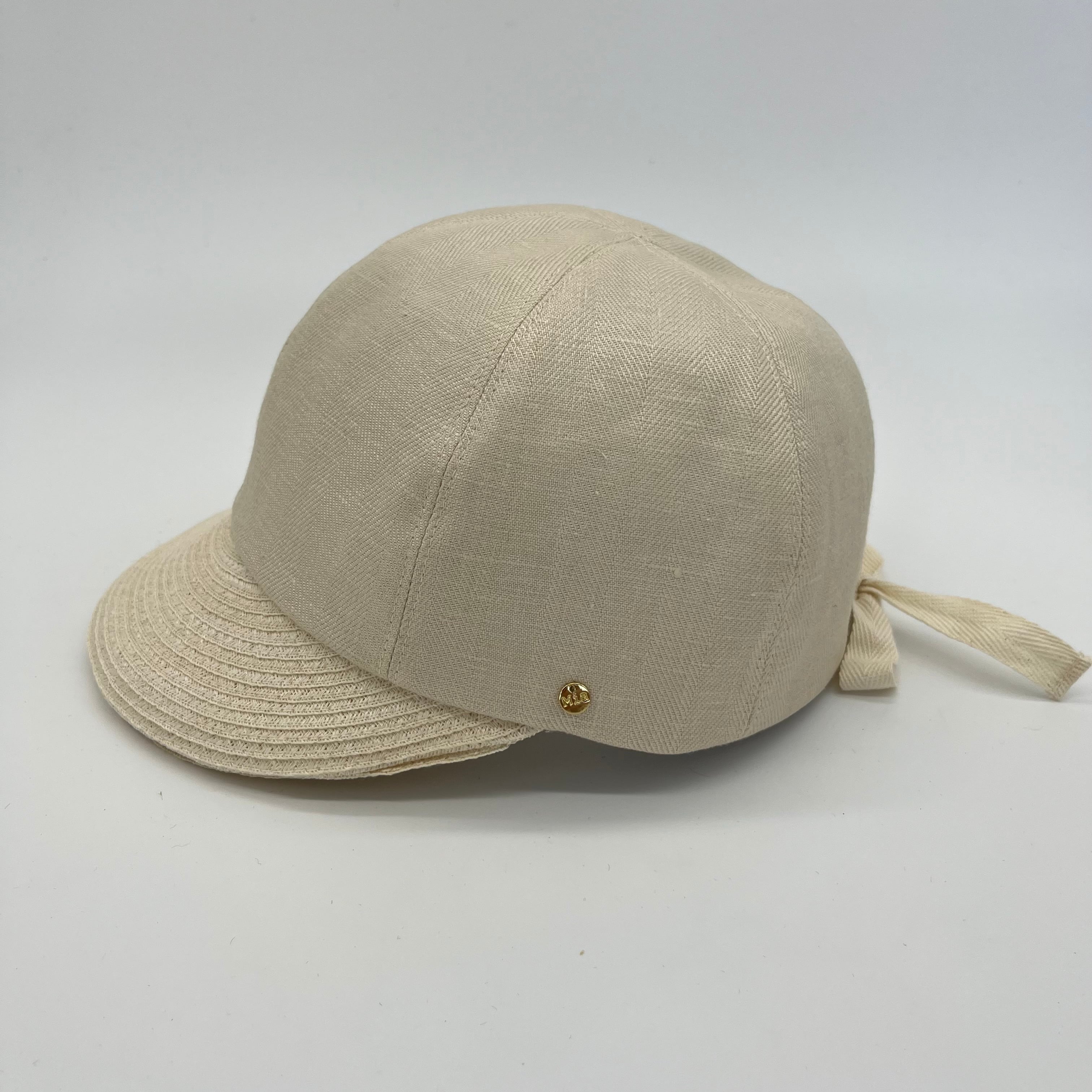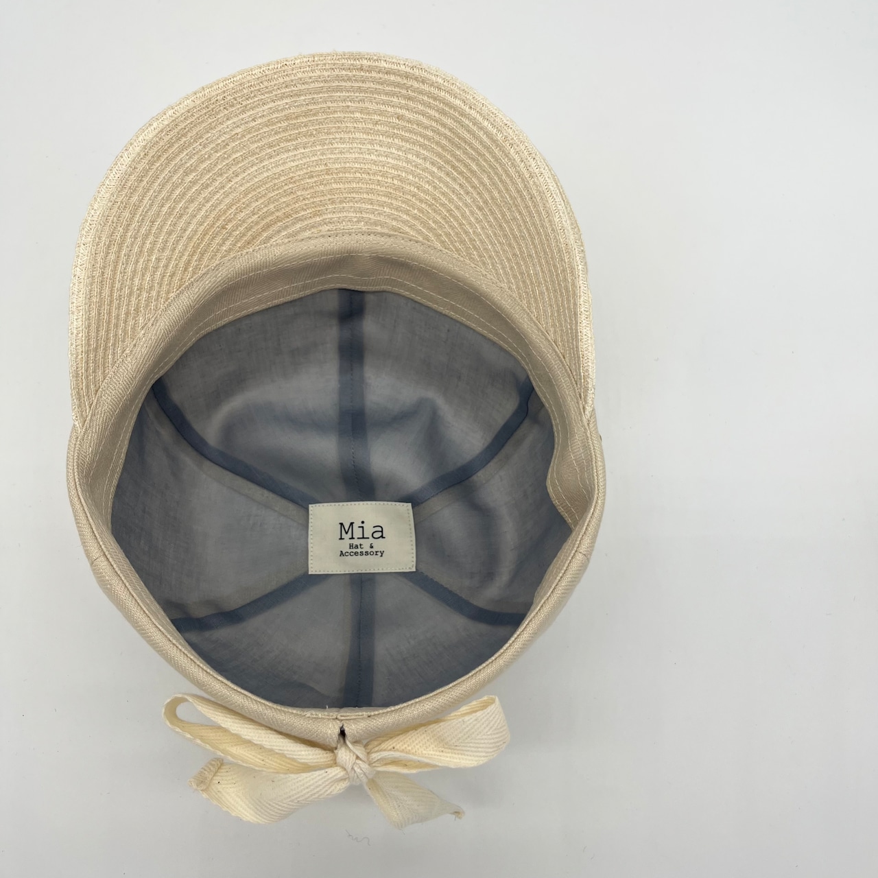 リネンと麻ブレードのブリムを合わせました。スポーティーすぎず、女性らしく被れるキャップを目指しました。