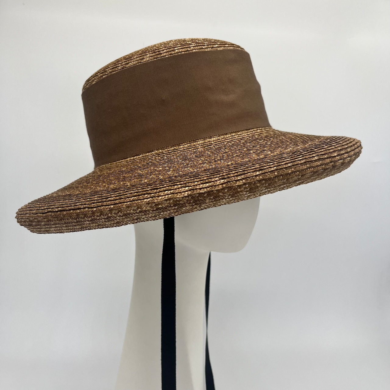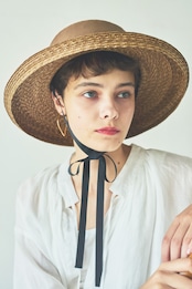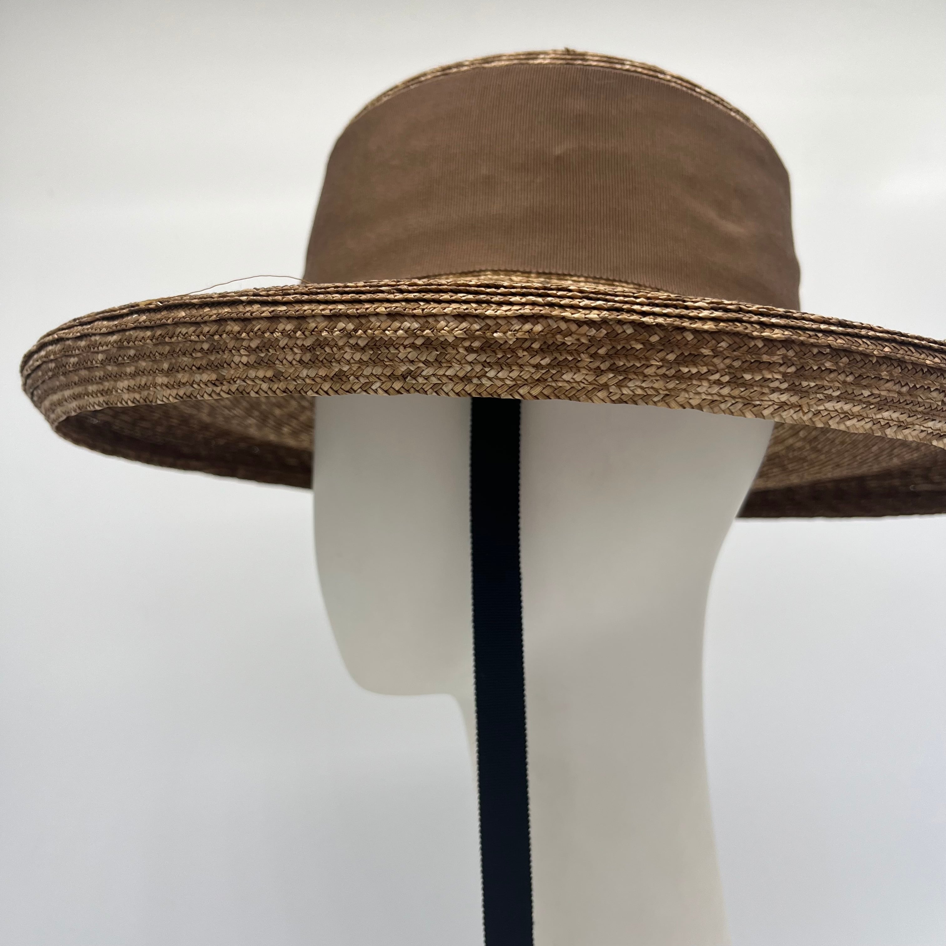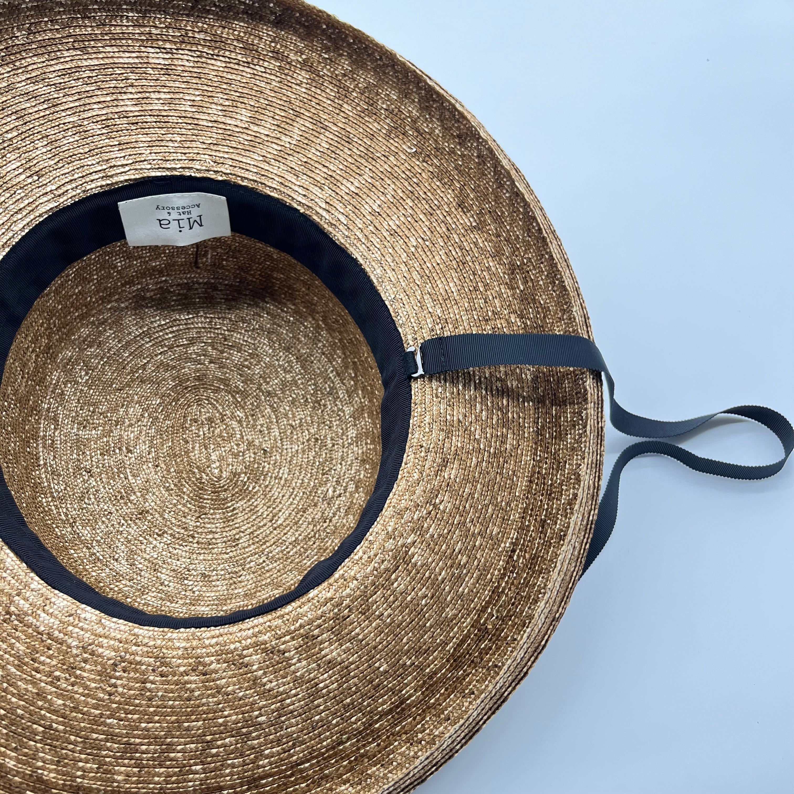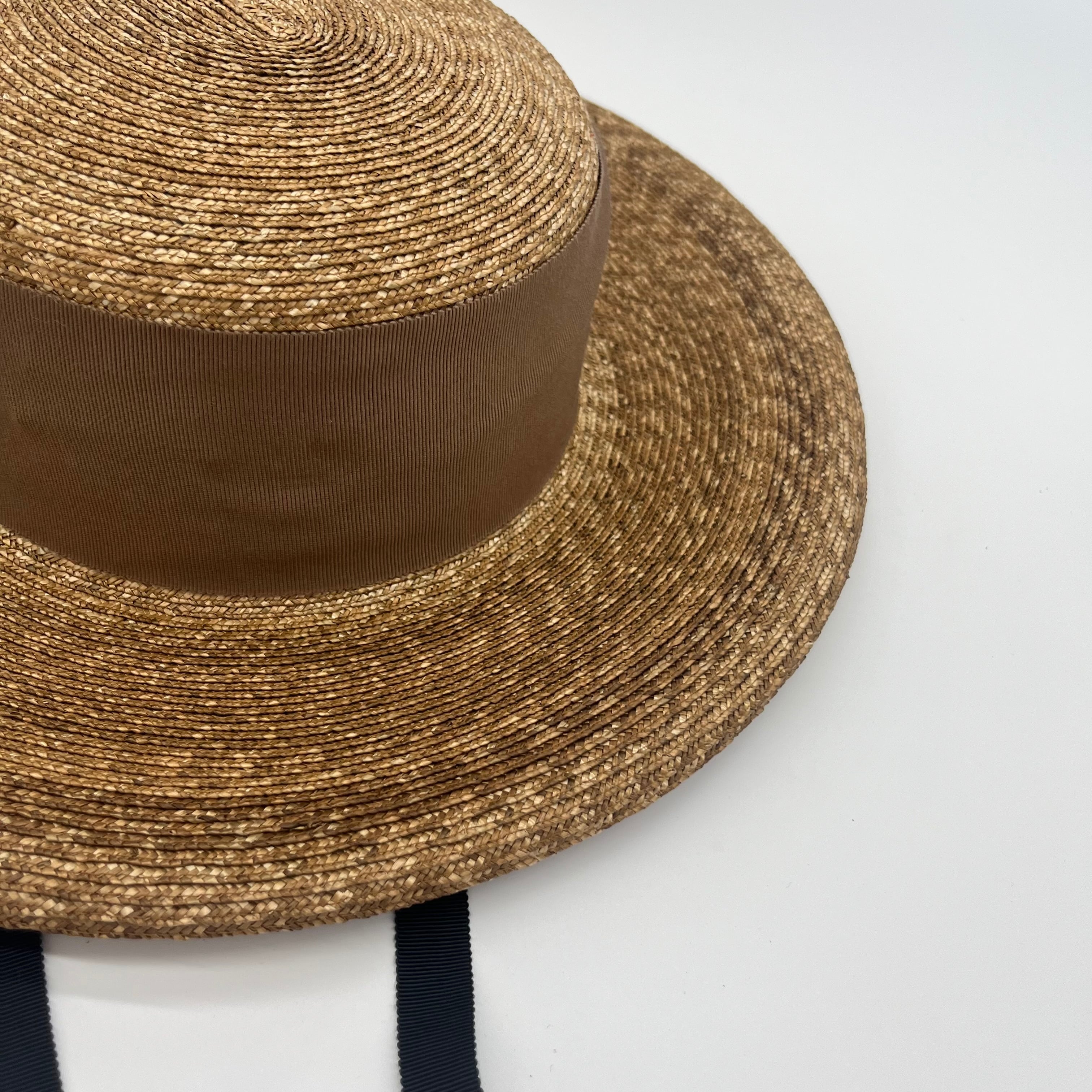 オリジナルで植物染めをしたモットルと言われる細麦のブレードで仕立てたキャノチェハット。