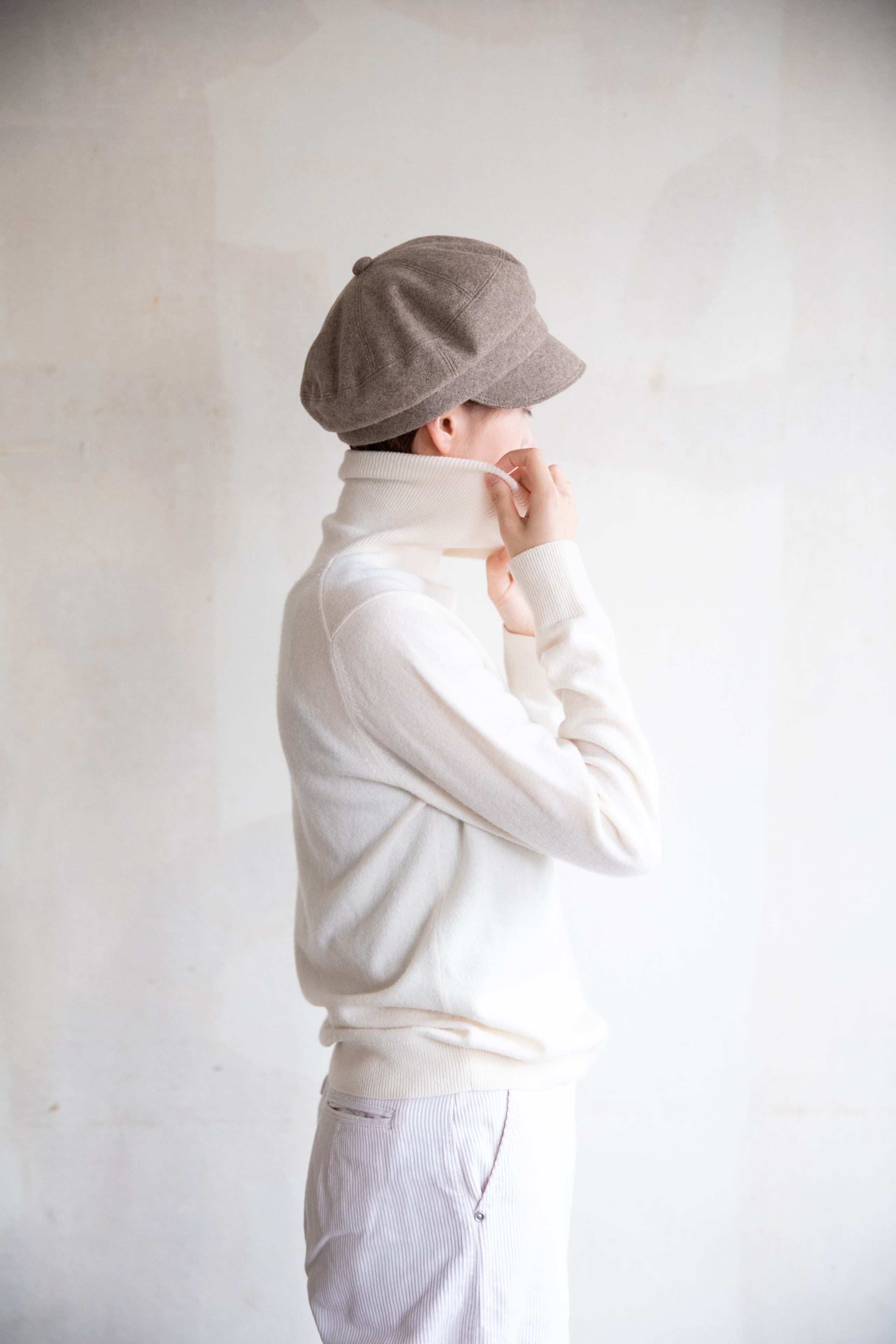 深く被ったり、浅く被ったり、斜めに被ったり・・・かぶり方で印象が変わるのもポイントです。