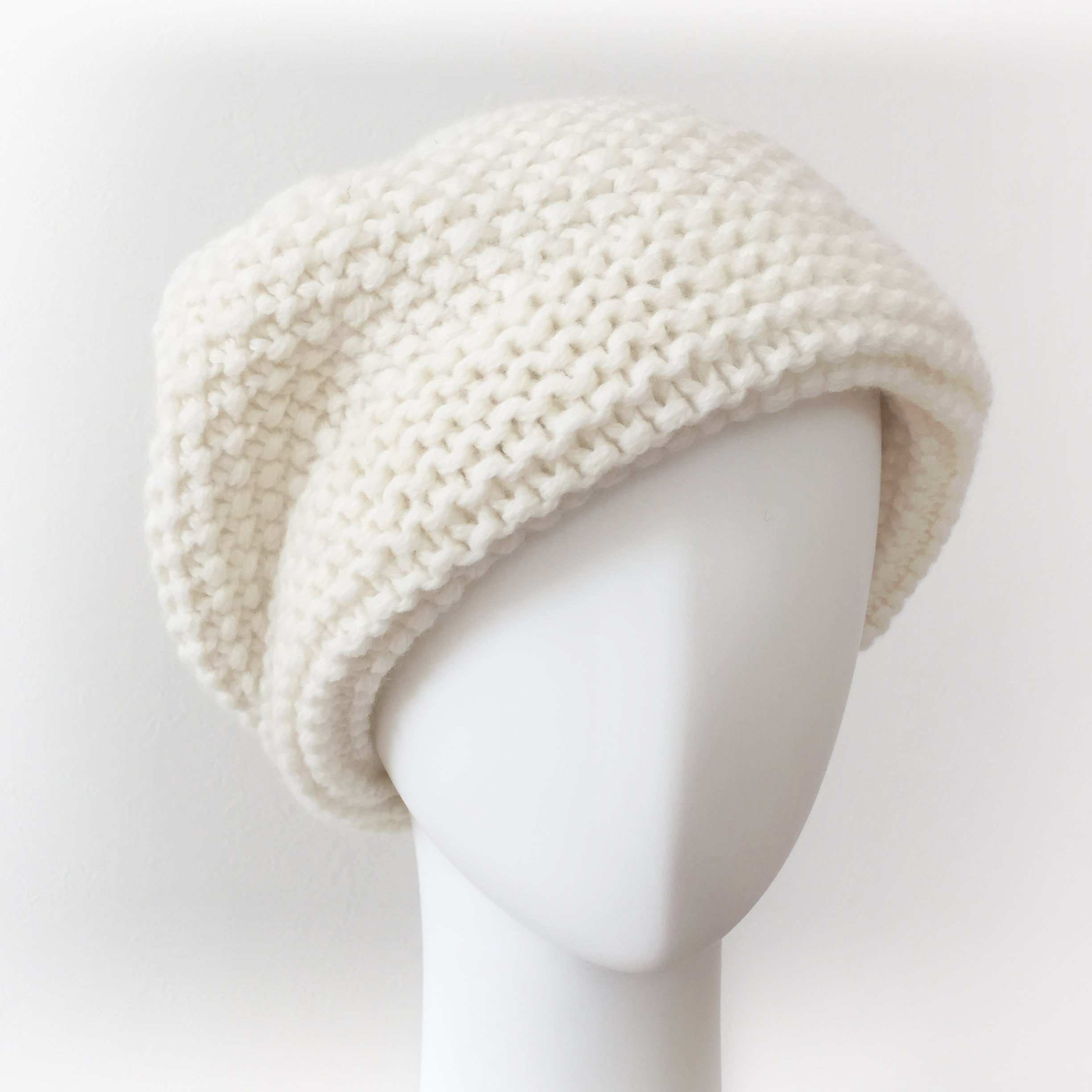 くしゃっとかぶると可愛いボリュームのあるキャップタイプのニット帽です。