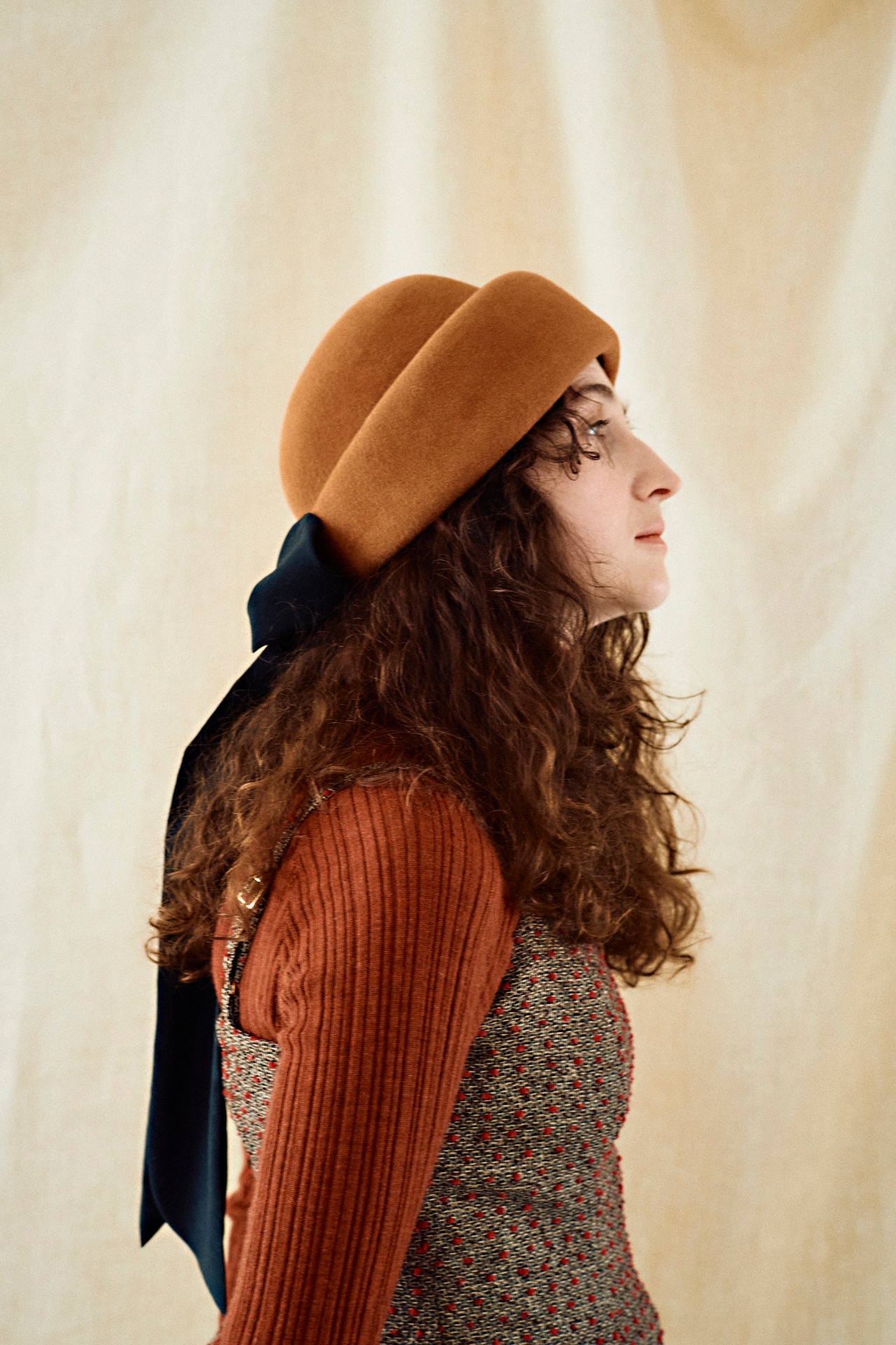 毛足が短くなめれかな手触りのラビットのベロアフェルトをヴィンテージの木型に入れて1点1点製作しています。