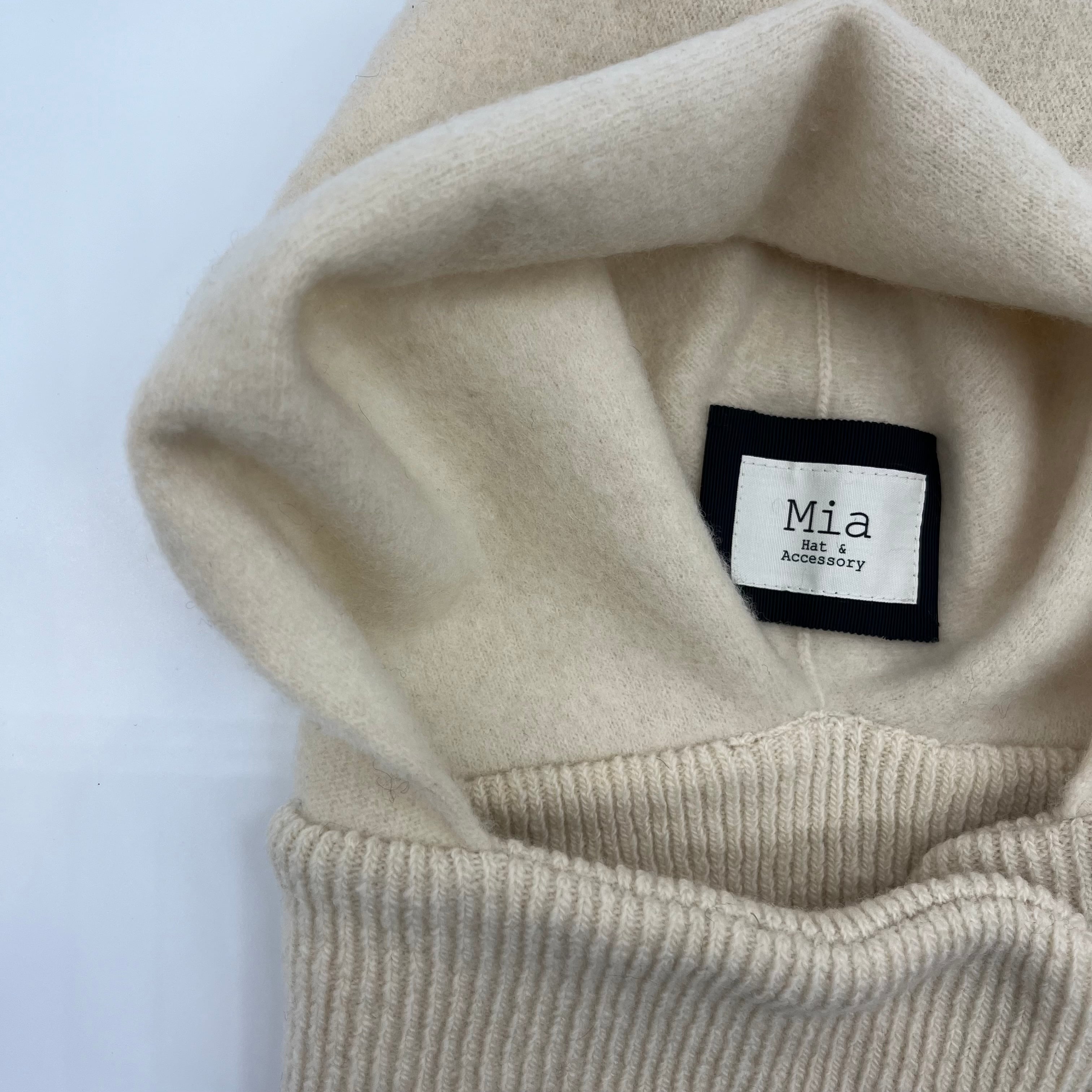 暖かく顔周りを包んでくれるフードとネックウォーマーが一緒になったようなアイテムです。